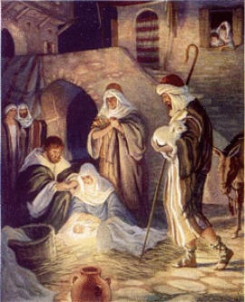Μόλις ξεχώρισαν μέσα στο μισόφωτο του στάβλου μια νέα κι ωραία γυναίκα, που καμάρωνε αμίλητη το παιδί της κι είδαν το βρέφος που μόλις είχε ανοίξει τα ματάκια του, εκείνες τις τριανταφυλλένιες κι απαλότατες σάρκες, εκείνο το στοματάκι που δεν είχε δοκιμάσει ακόμη την τροφή. Κι η καρδιά τους αναστατώθηκε.