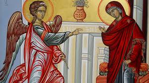 Σήμερα όλη η κτίση χαίρεται (μεγαλύνεται), διότι ο Αρχάγγελος απευθύνει χαιρετισμό σε Σένα, Σεμνή και Άχραντε, Πάναγνη (Θεοτόκε). Σήμερα ο κομπασμός του φιδιού σκοτεινιάζει, γιατί έχει διαλυθεί εξαιτίας της κατάρας ο σύνδεσμος του Προπάτορα. Για αυτό και φωνάζουμε ολότελα σε σένα Χαίρε, η πιο χαριτωμένη. (Από τον όρθρο της 25ης Μαρτίου)